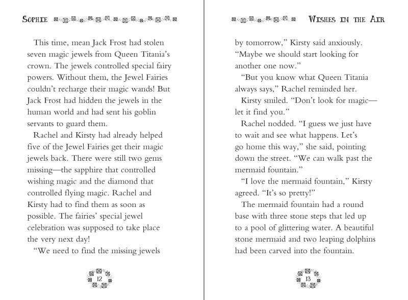 Best friends Kirsty and Rachel have been looking for the missing jewels for each Jewel Fairy ever since Jack Frost stole them from the fairy queen’s crown! One day, they visit the Mermaid Fountain and sense another missing jewel nearby. The girls meet Sophie the Sapphire Fairy and help her find the sapphire that grants wishes. But Jack Frost’s goblins are trying to get ahold of it too! Can they help Sophie the Sapphire Fairy rescue her magic jewel? With age-appropriate text, a magical story, and illustrations throughout, this chapter book is perfect for kids who are starting to read independently.