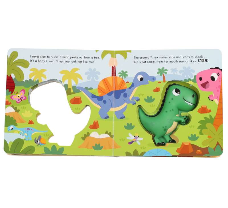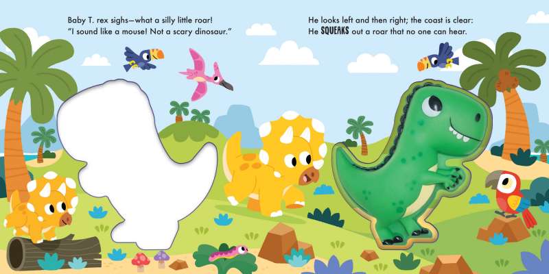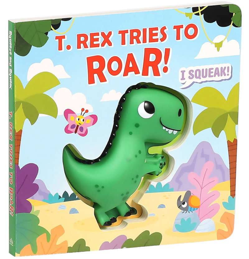 Baby T. rex wants nothing more than to roar like his mom, but there’s just one problem…his roars sound like a squeak! Young readers will love pressing the squishy T. rex’s squeaky, silicone belly on every page as he learns that there’s nothing more fearsome than a squeaking dino in this adorably illustrated board book.