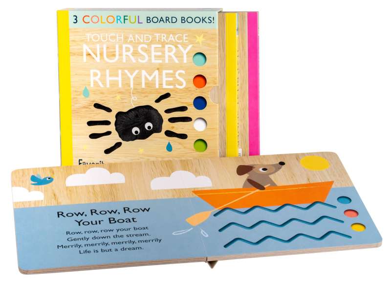 Read your favorite nursery rhymes with your little one with this board book slipcase! Featuring the beloved Touch and Trace Nursery Rhyme books Itsy Bitsy Spider, Hey Diddle Diddle, and This Little Piggy, each book contains five classic nursery rhymes, adorable illustrations, and printed shapes for little hands to touch and trace. This Touch and Trace Nursery Rhymes book set is the perfect gift that can be enjoyed the whole year through.