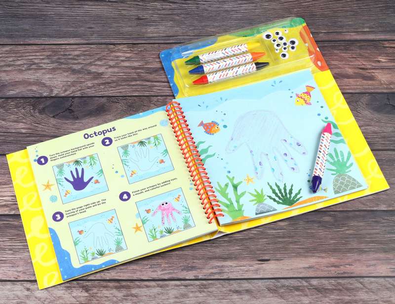 The ubiquitous hand-print turkey is cute, but get ready for absolute adorableness in the shape of little hands turned into llamas, unicorns, sea monsters, and more! Kids can follow super-simple pictorial instructions that show how to hold their hands and then trace them on the colorfully illustrated backgrounds. Add color using the included double-sided crayons, and finish with a flourish by adding on some googly eyes. Dozens of easy projects mean little hands will be busy for hours creating art that is fridge-worthy all year round.